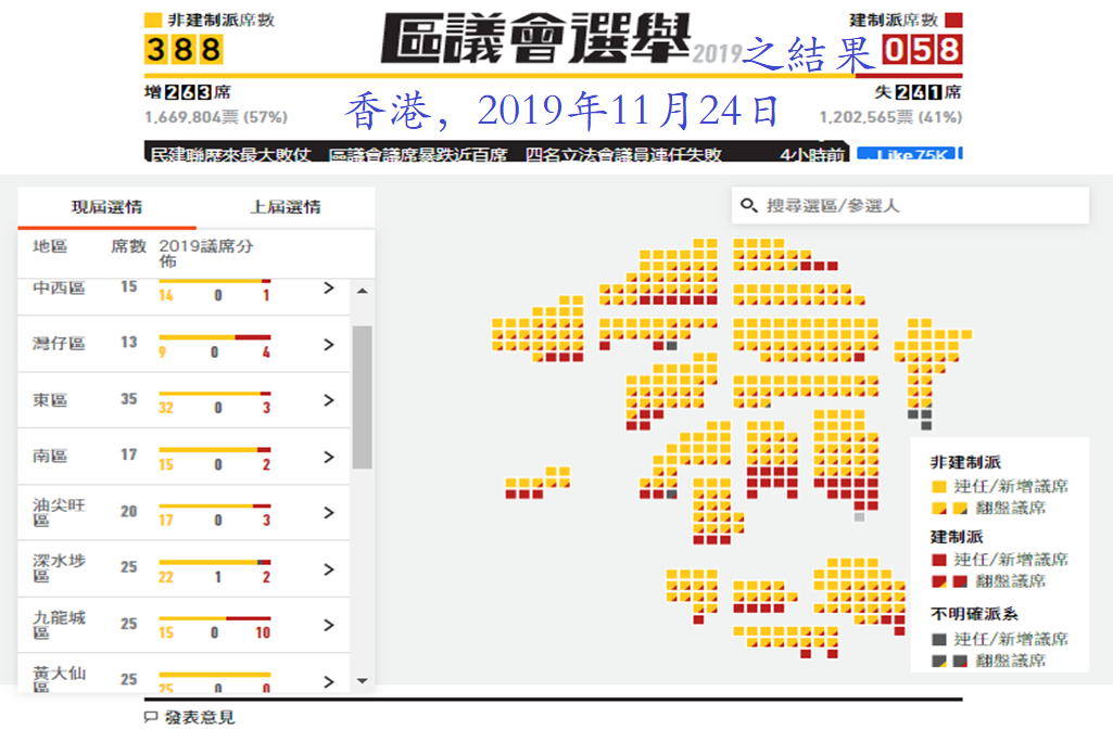 • 2019年11月24日,香港区议会选举,投票率创历史。