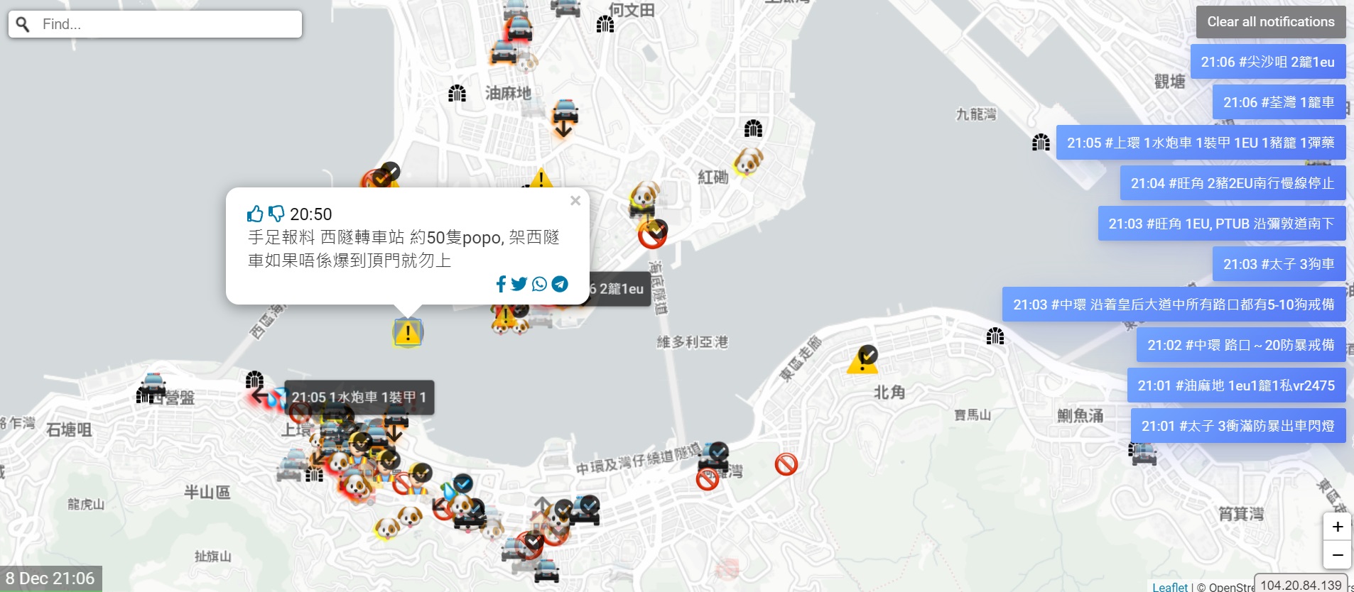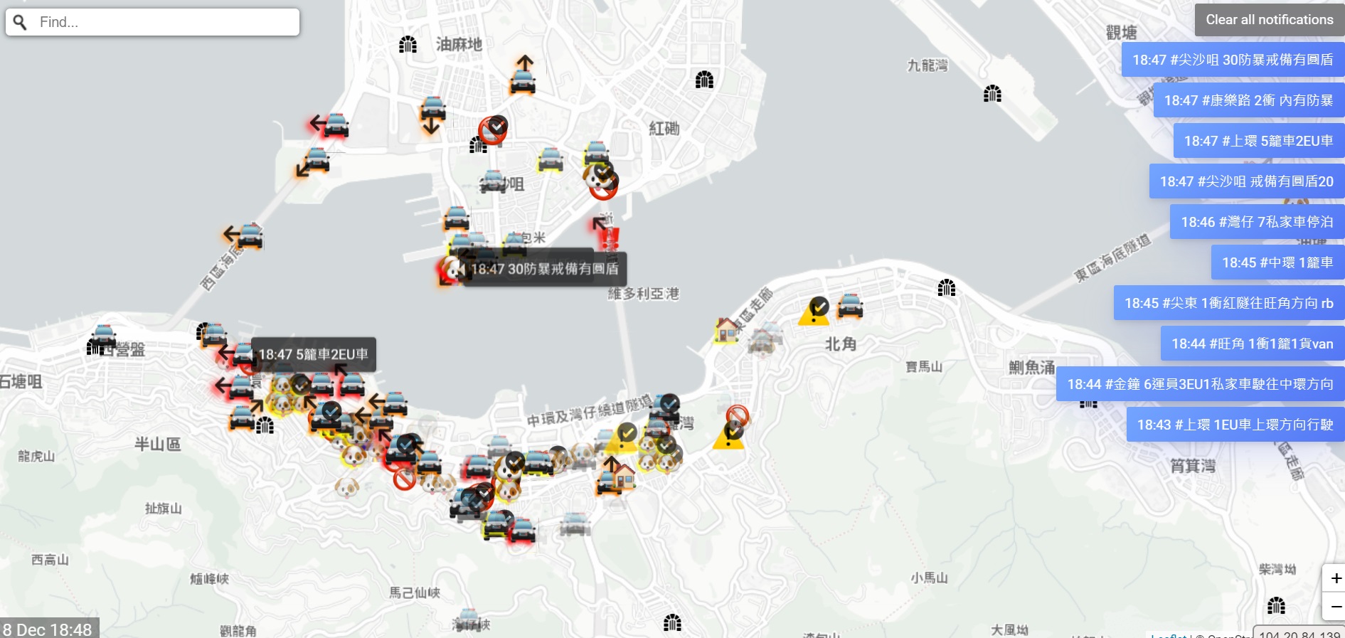 制造了民众与暴力机器的空前对立。下图为12月8日傍晚6点多的香港。