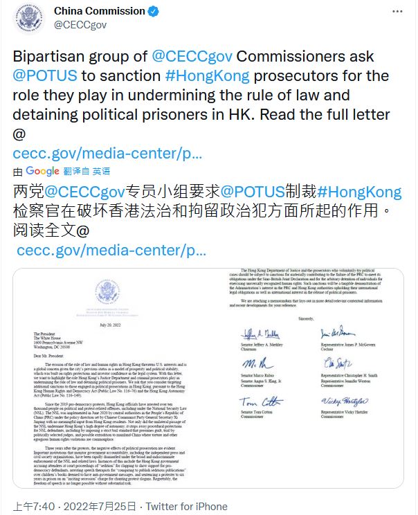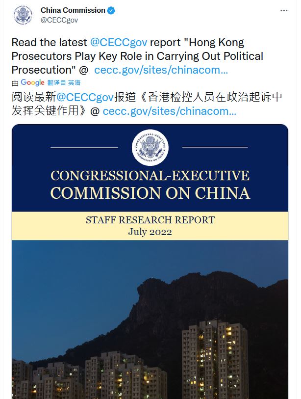 2022年7月底,聯合國人權事務委員會發布報告,批評香港人權狀況,
