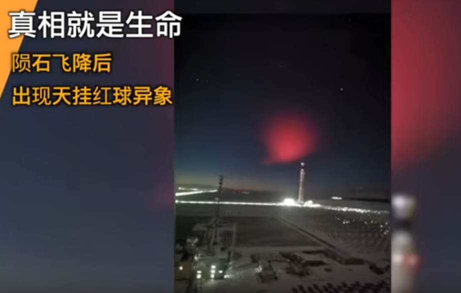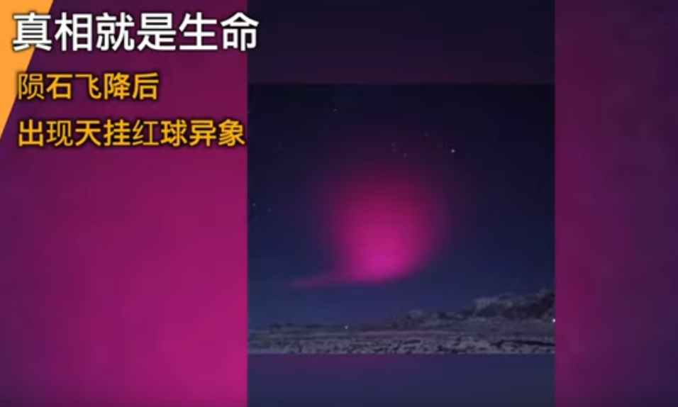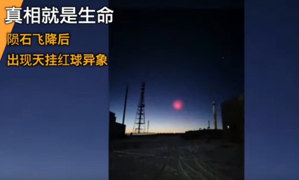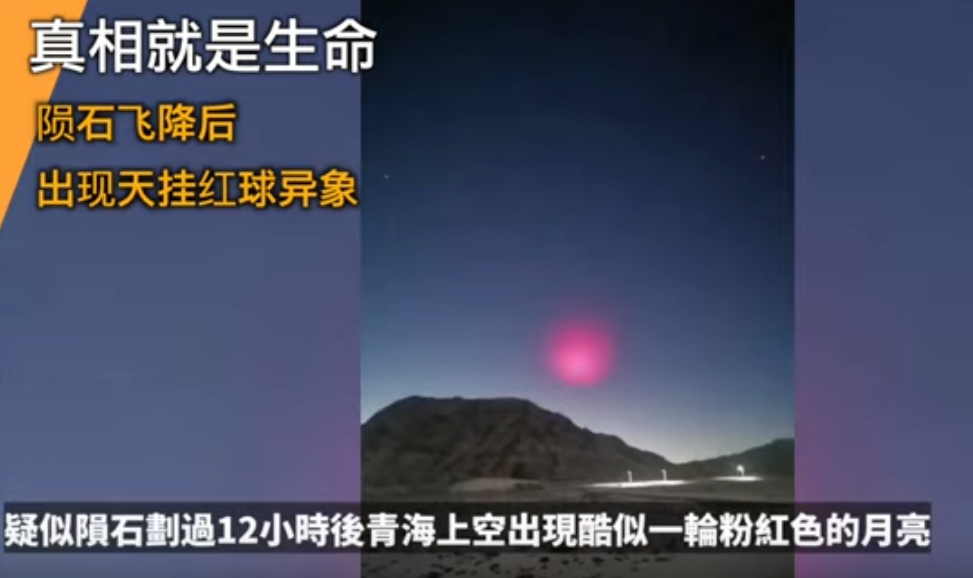 青海,在火流星墜落後約12小時的傍晚,天空出現粉紅色的球體光暈。持續40多分鐘。
