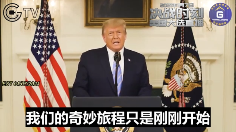 之後,川普總統發表視頻講話。
