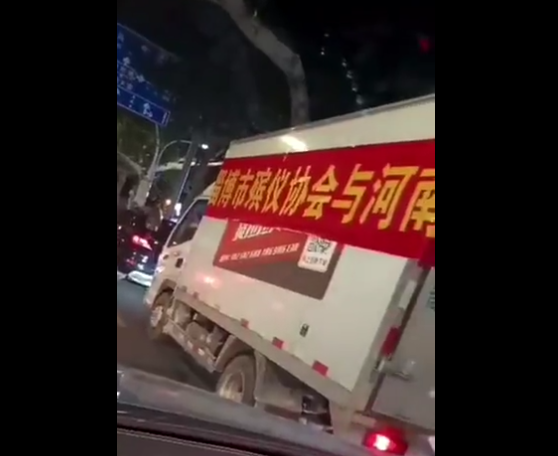 7月26日,多位网友在推特上传视频,显示山东淄博殡仪协会动用大型厢式货车支援河南。车上贴着写有“淄博市殡仪协会与河南人民同在”的横幅。