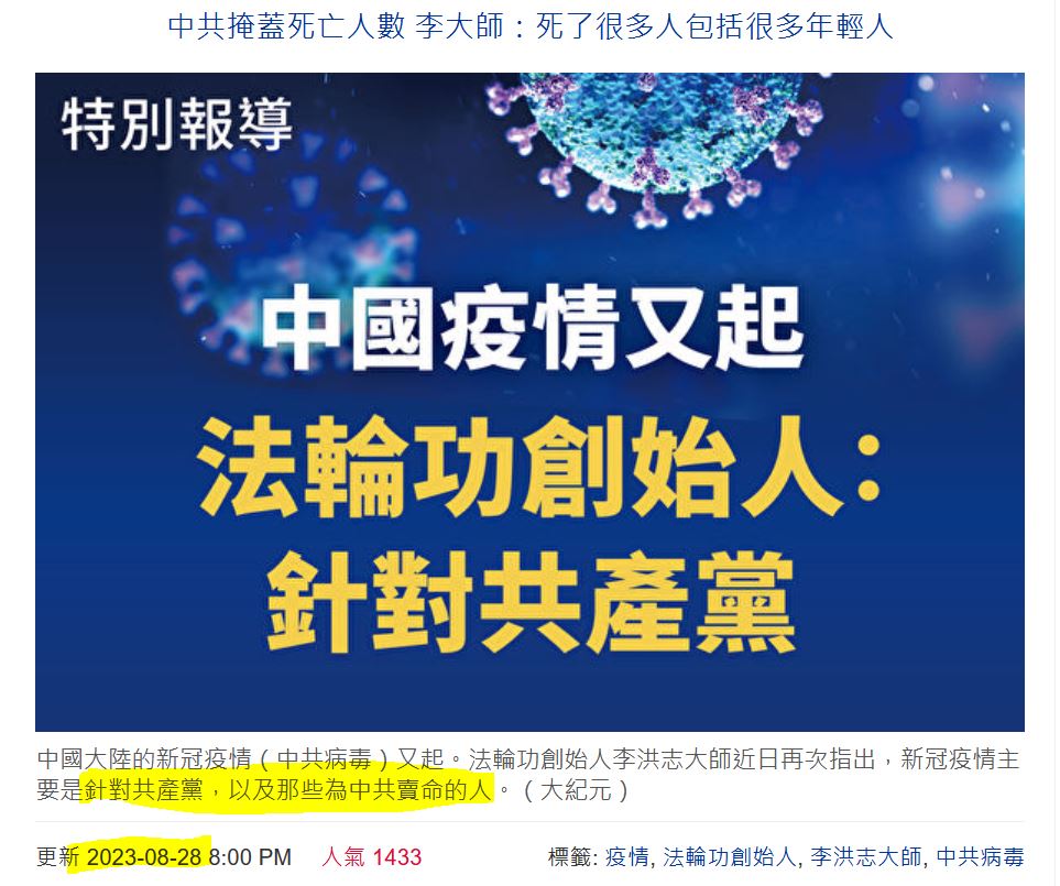 • 2023年8月下旬,李大師:共匪病毒人造瘟疫就是滅共的。
