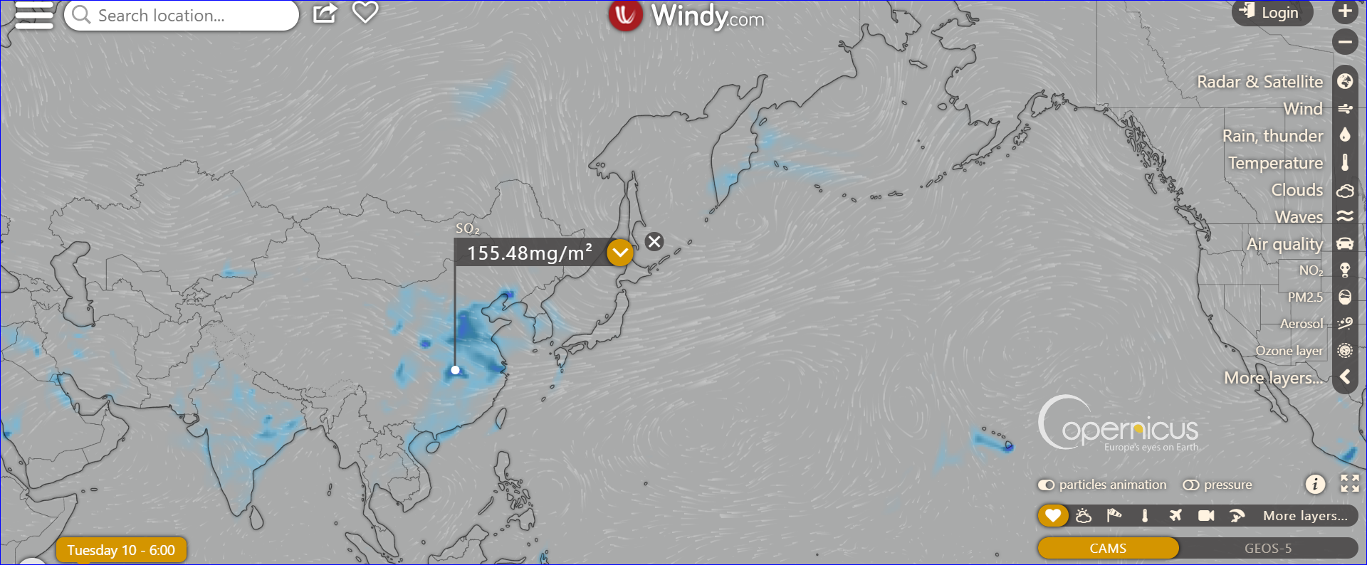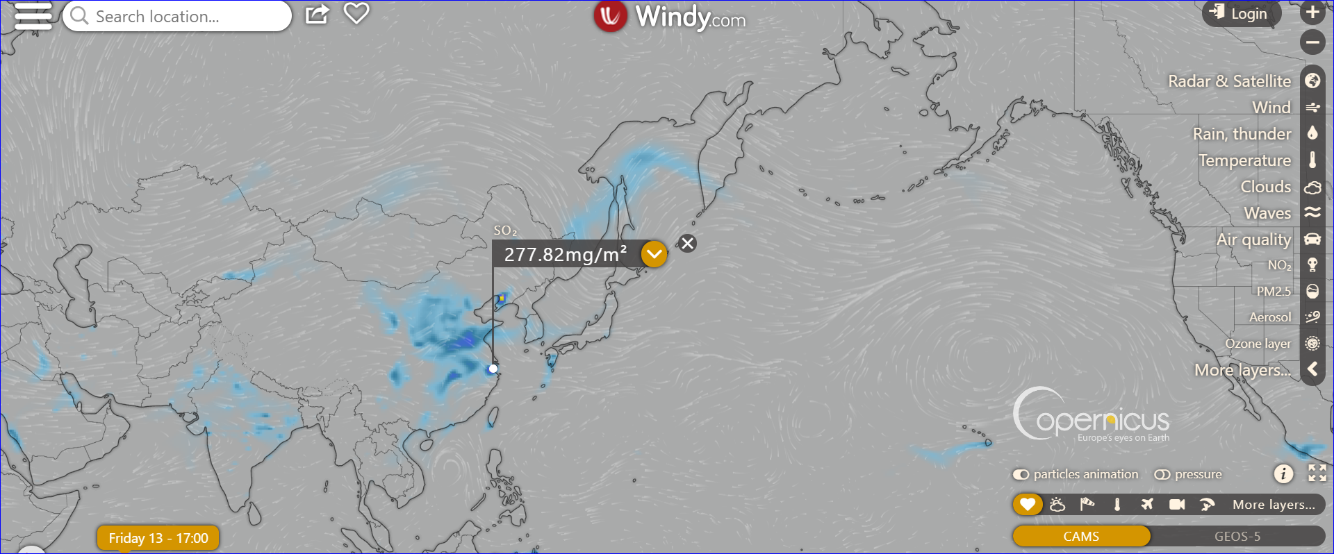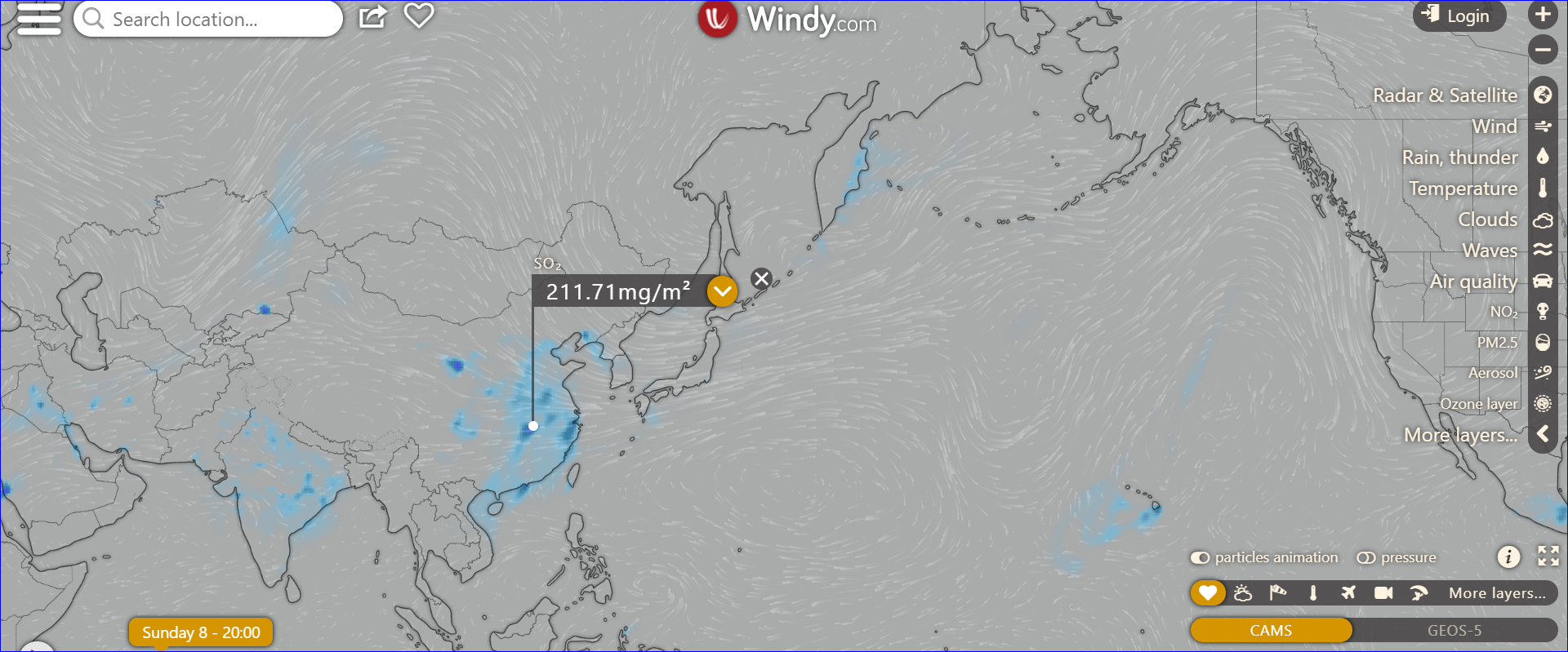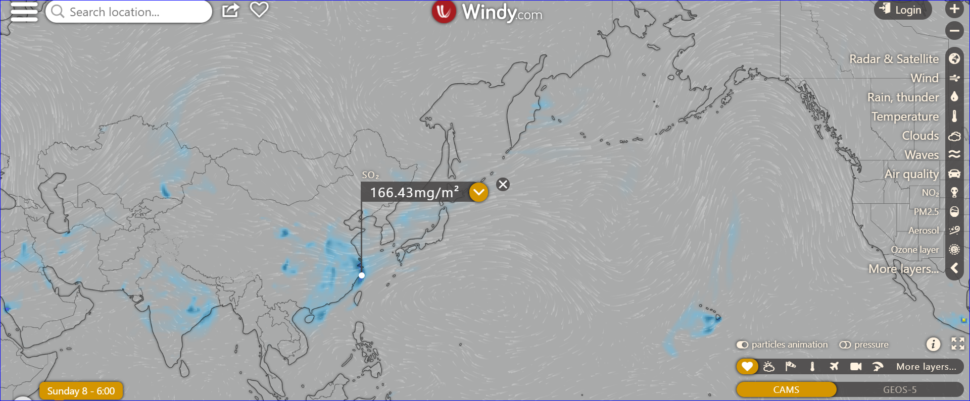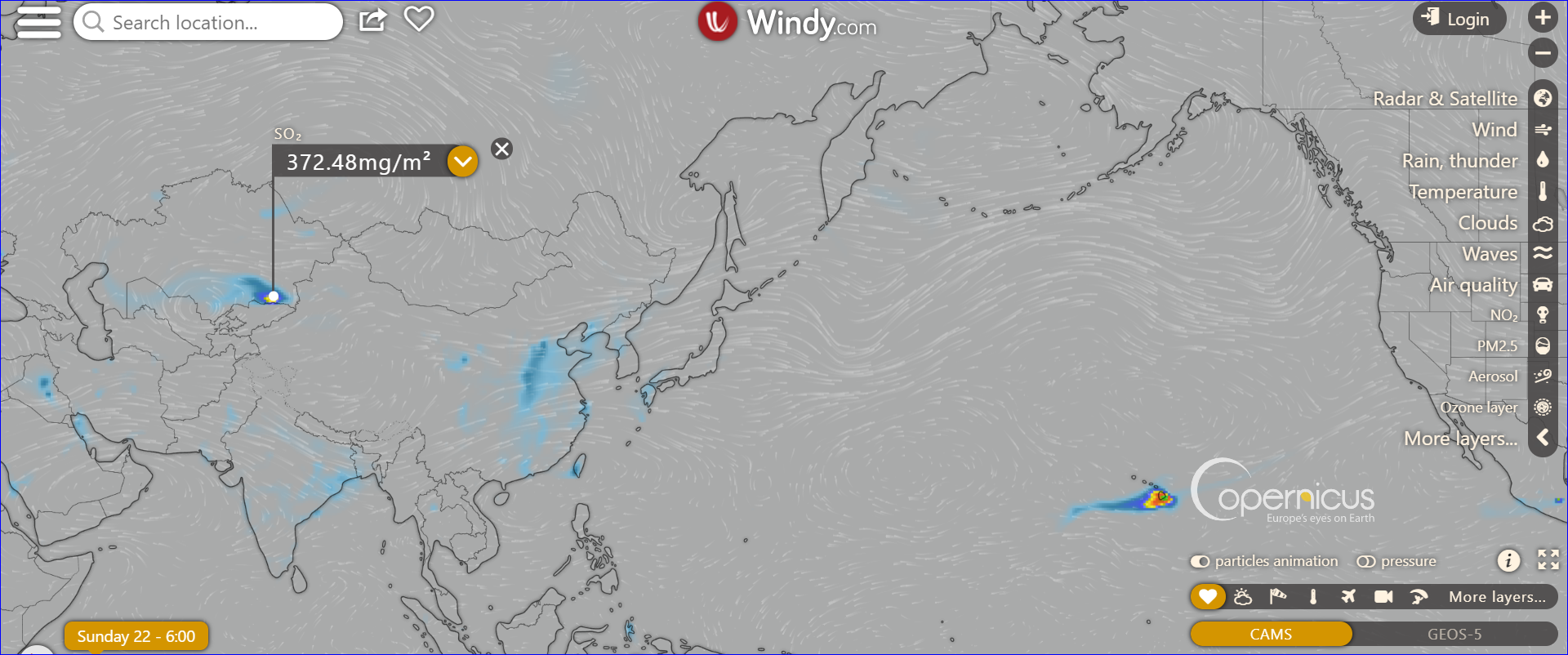 夏威夷上空so2含量最高,估計其與火山噴發有關。
