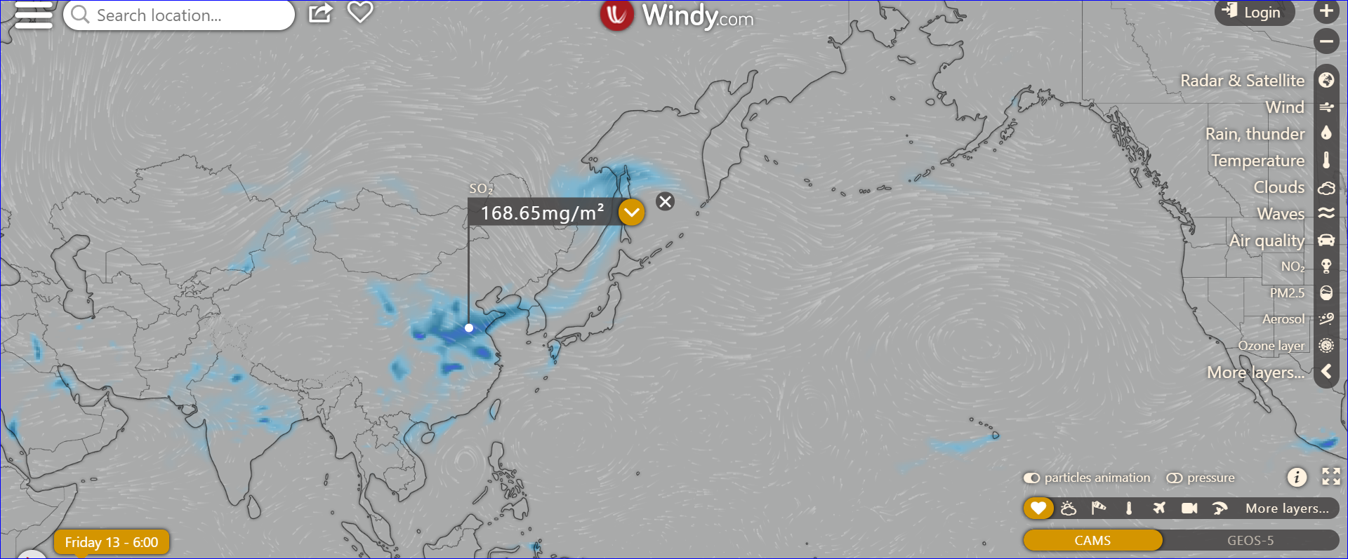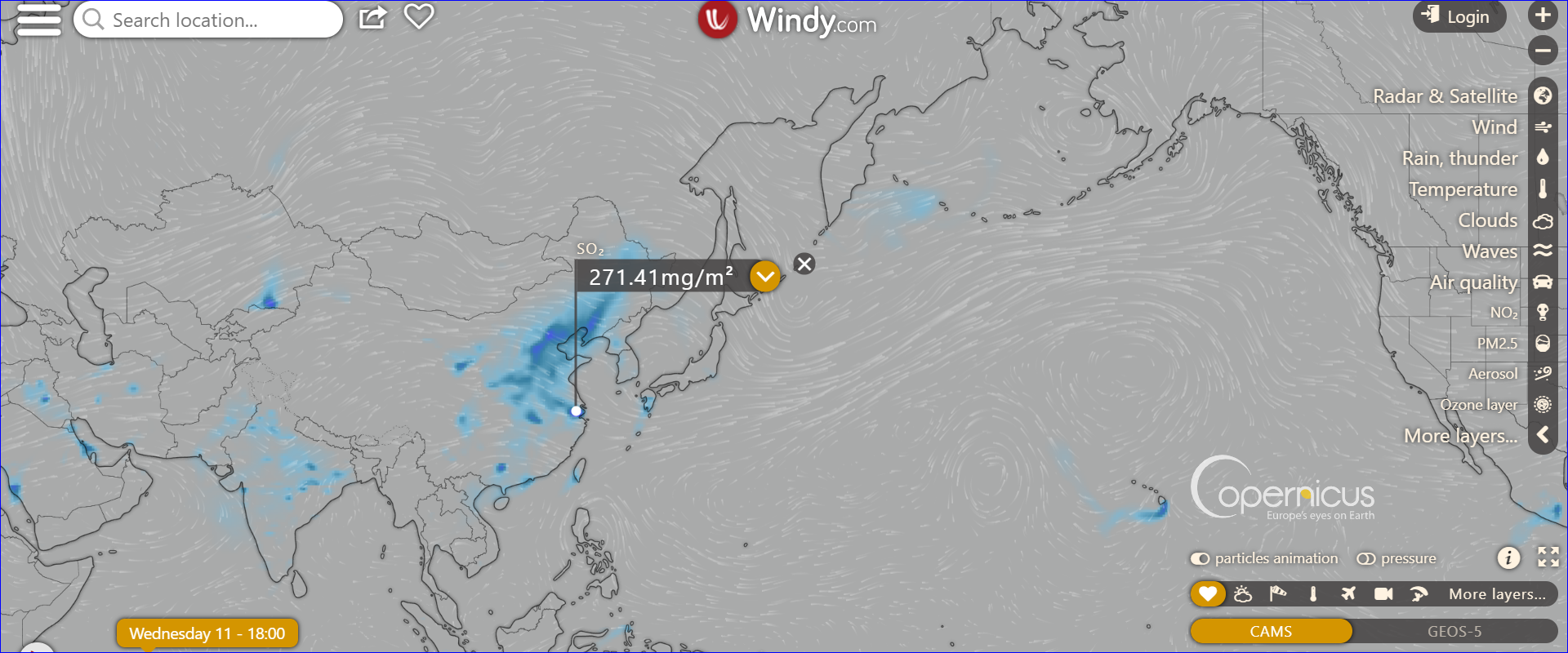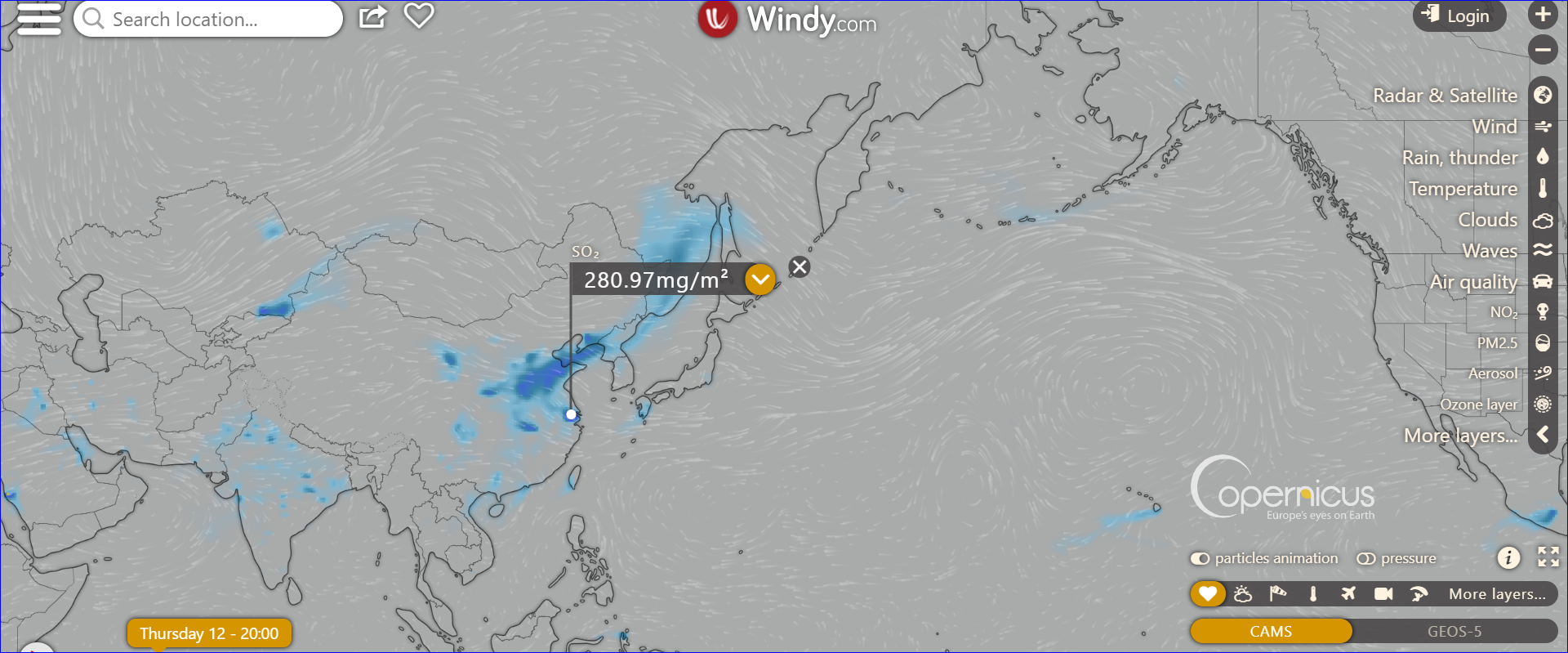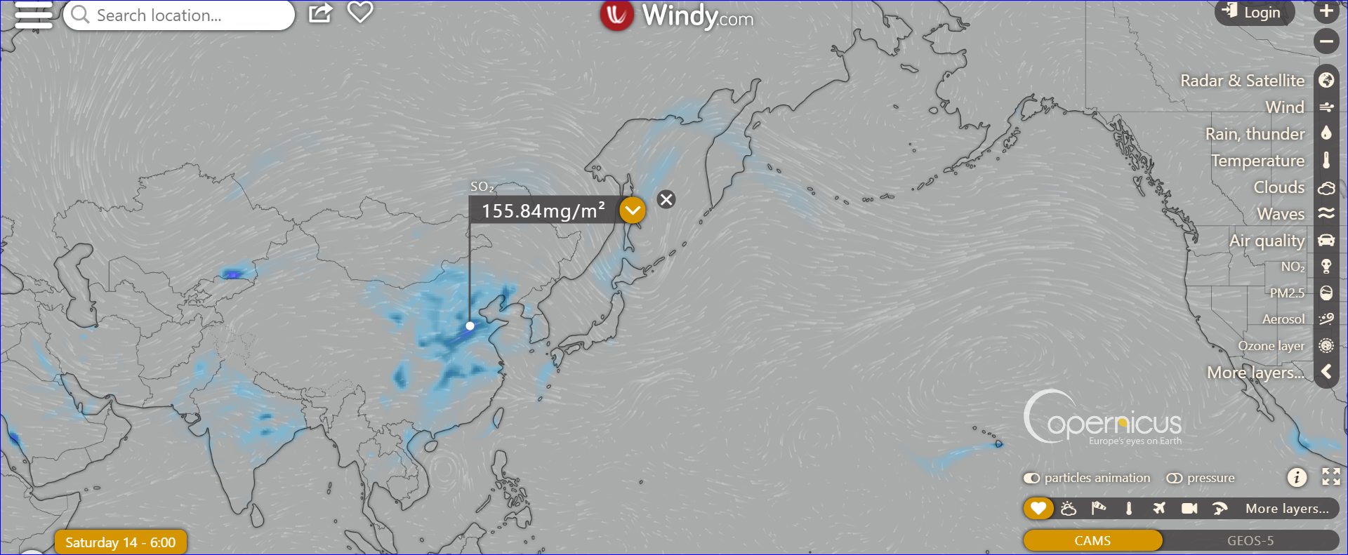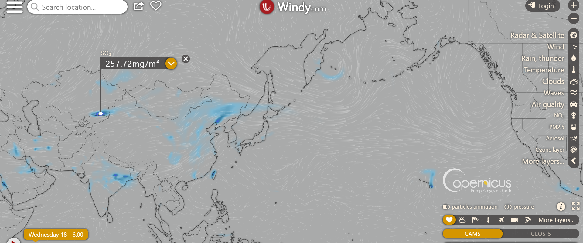 夏威夷上空so2含量最高,估計其與火山噴發有關。