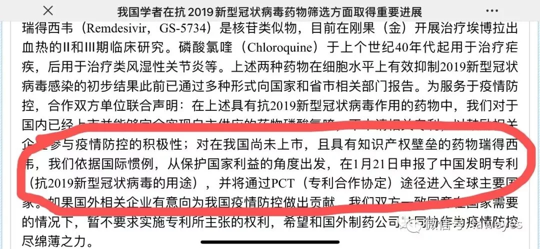 • 武汉病毒研究所,为何在美国病患治愈前的6天前,也就是2020年1月21日,就先知先觉的申报瑞德西韦的中国发明专利。这是所有人不得不思索的问题。