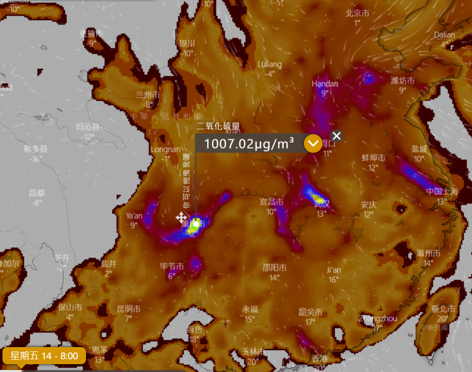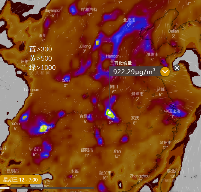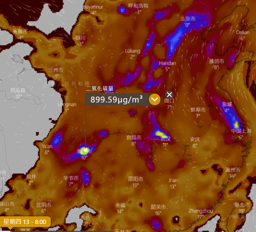 2月13日早8点,so2含量,重庆超过武汉。重庆的焚尸炉还没改造?