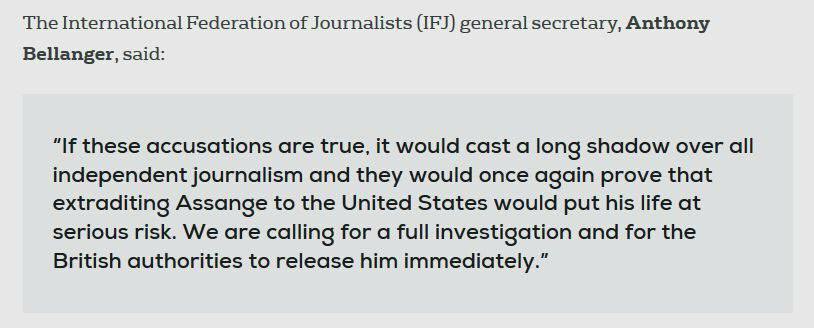 2022年2月,國際記者聯盟呼籲英國當局立即釋放阿桑奇,並徹底重新調查此案。。