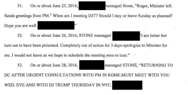 When the Mueller report came out, it redacted the conversations of Roger Stone.