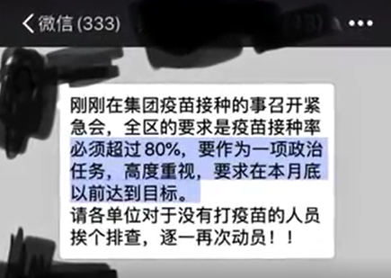 还有网传视频显示,疑似一名大陆出租车司机透露,自己亲戚所在的小区有女性居民打疫苗时死亡,当局说她“有基础病,与疫苗无关..“