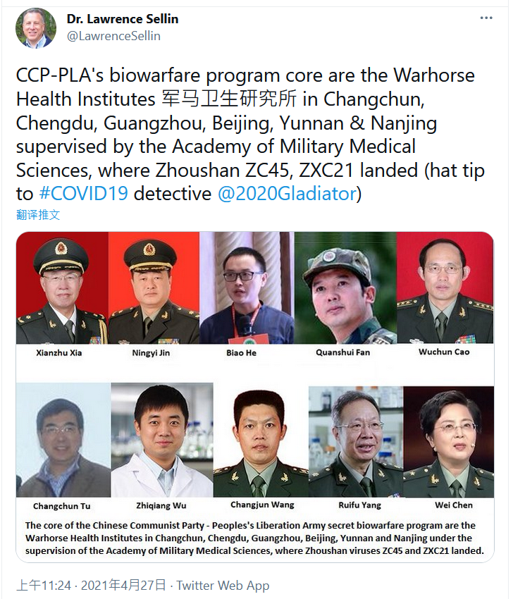 NIH撥款管理人、病毒顧問專家、美軍情報專家