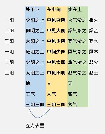 以天之風、火、熱、濕、燥、寒六氣配以三陰三陽,